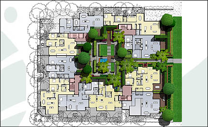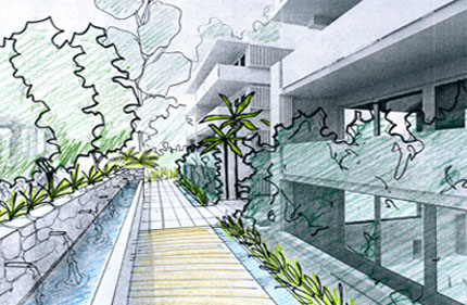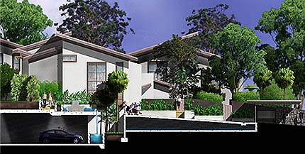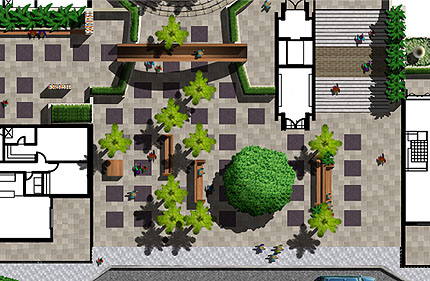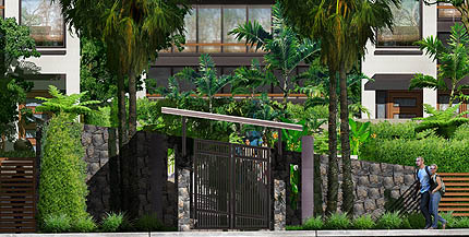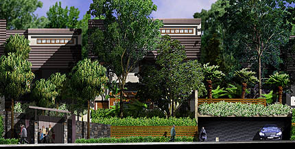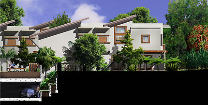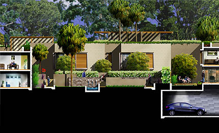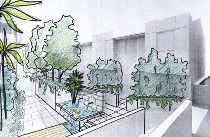 Stepped planters connecting to basement carpark to provide light & natural ventilation. |