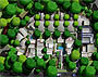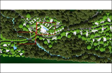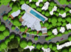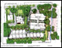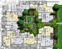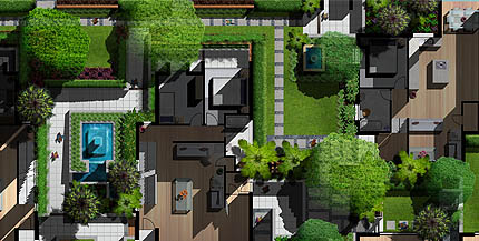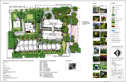 Detailed floor plan / garden layout shows relationship between internal & external spaces. |